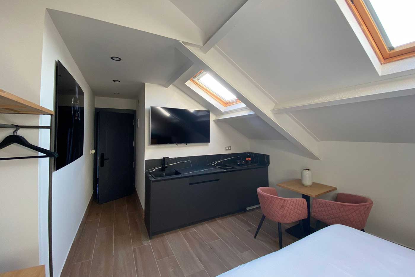 Acogedor apartamento de 20 m² en el bajo cubierta, con un diseño práctico y agradable que garantiza confort y un descanso óptimo.
